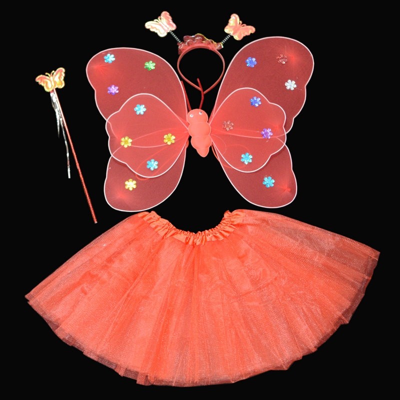 Children's Performance Costume Children's Festival Performance Double Colored Angel Butterfly Wings 4 pieces of mesh yarn dress suit