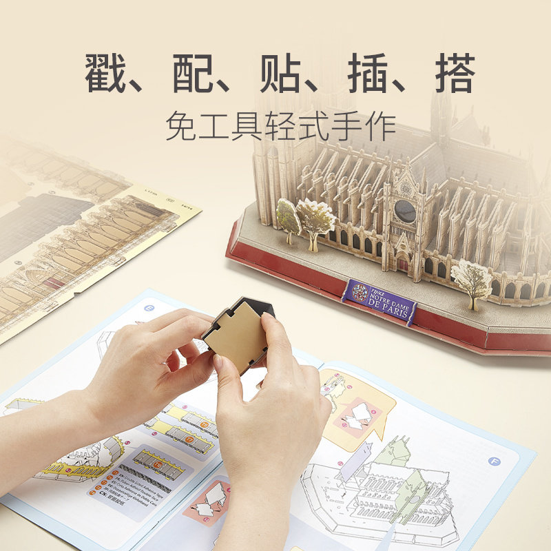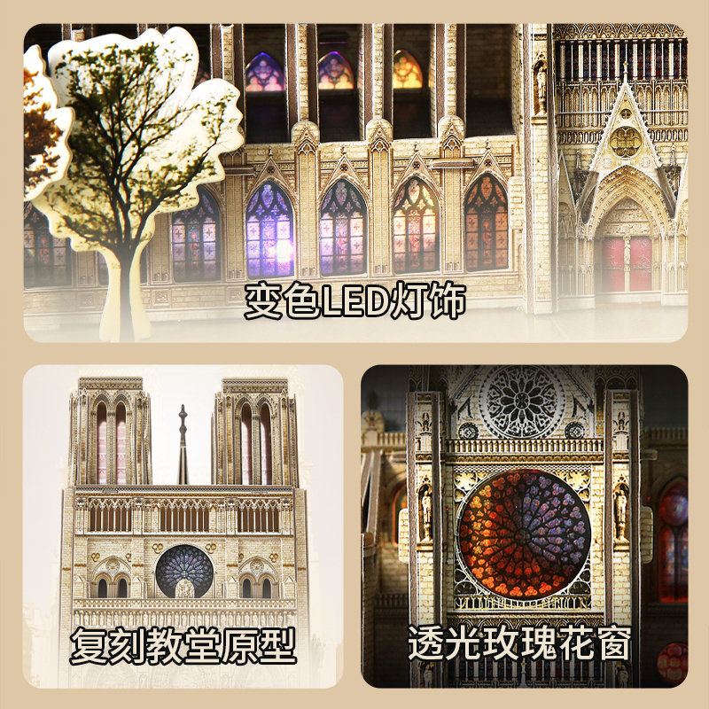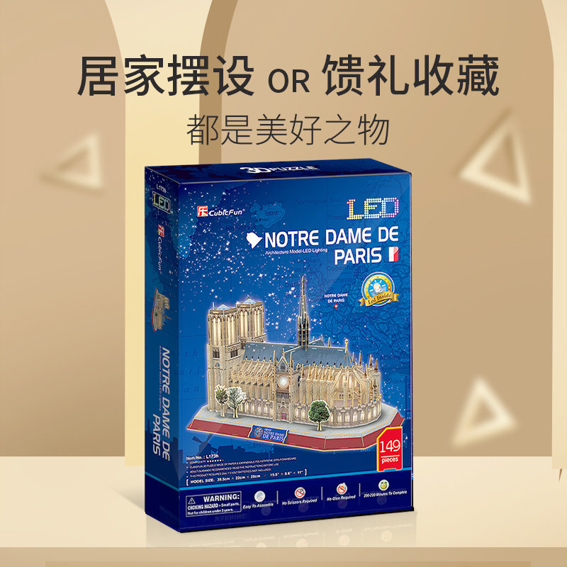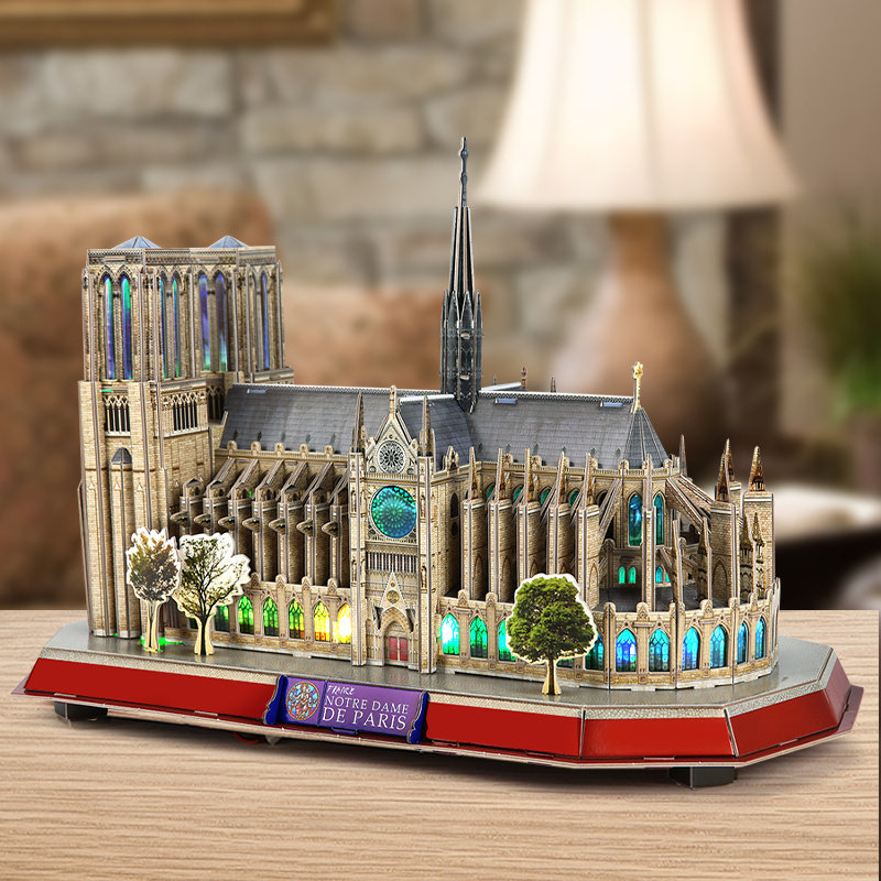 Music Cube 3D Cubic puzzle creative hand assembled toy French architectural model with lamp Paris Notre Dame