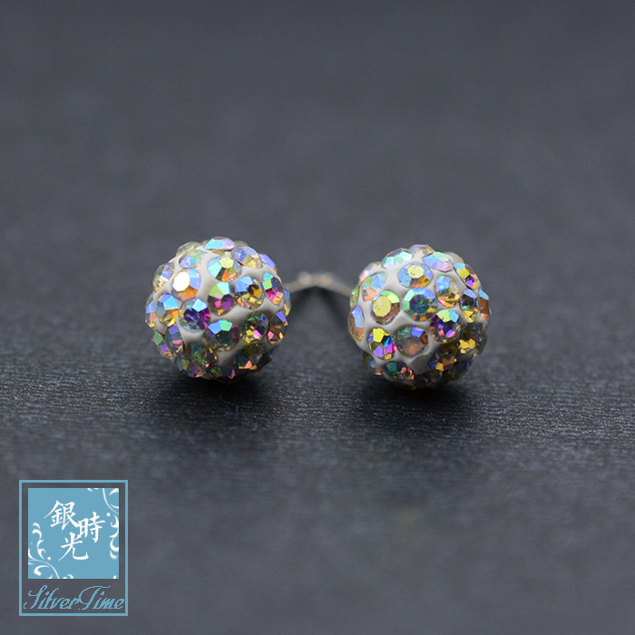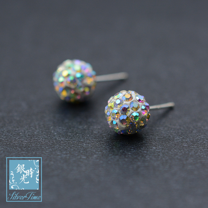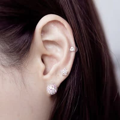 S925 Pure Silver Ear Pin Cute Personality Creative Fashion Ear Trim Insert Drilling AB Drill Crystal Drill Ball Girl Earrings