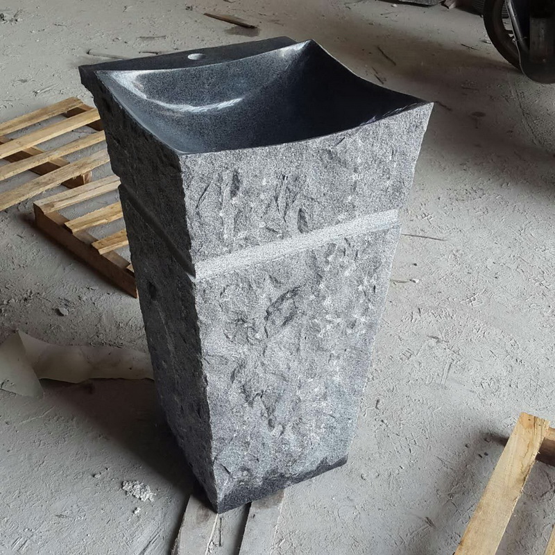 Natural stone upright post basin balcony column type washbasin integrated marble washbasin outdoor handwashing table pool