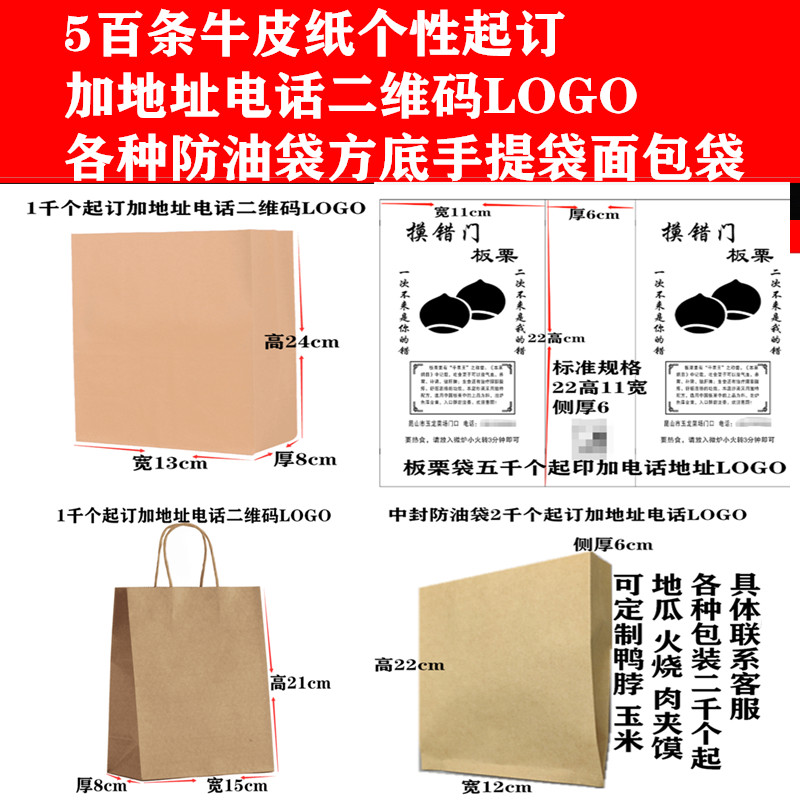 Blank kraft paper bag breakfast bread paper bag Egg boy paper bag Chestnut cake wrapping bag corn bag custom made