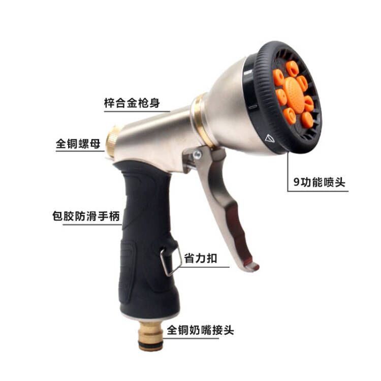 Groundhokin Bag Plastic Car Water Gun High Pressure Car Wash Water Gun Gardening Water Gun Zinc Alloy 9 Functional Nozzle Spray Gun