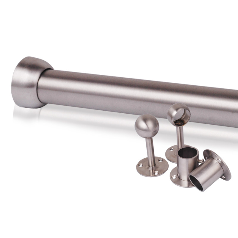 Stainless steel wardrobe clothes bar fixed single bar clothes bar balcony flange seat custom thick 19 round tube