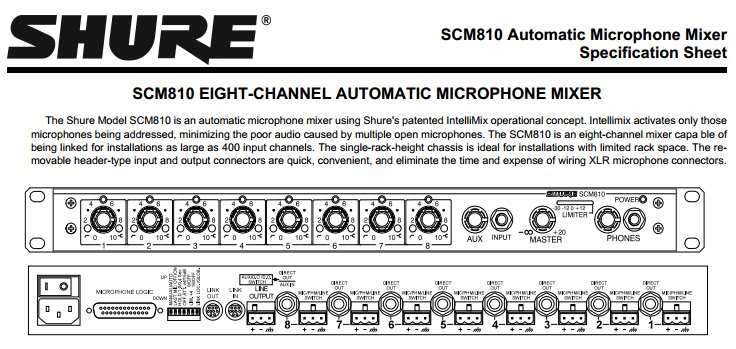 SHURE SCM810 Automatic Meeting Mixer Schur 8 Way Mixer Schuler Conference Microphone Mixer