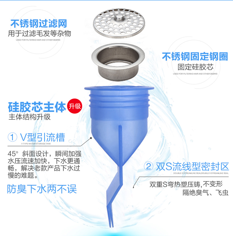 Silica gel floor drain core deodorized inner core sewer pipe anti-overflow sealing ring floor drain deodorant anti-wormproof core
