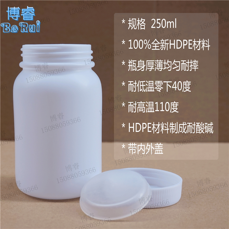 250ml White Plastic Large Bottle PE Sample Bottle Reagent Bottle Polyethylene Liquid Solid Chemical Package Bottling