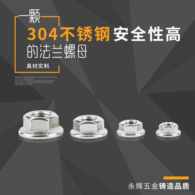 304 Stainless steel hexagon flange nut Flange face cap anti-slip nut M3M4M5M6M8M10M12M14M16