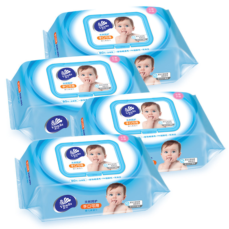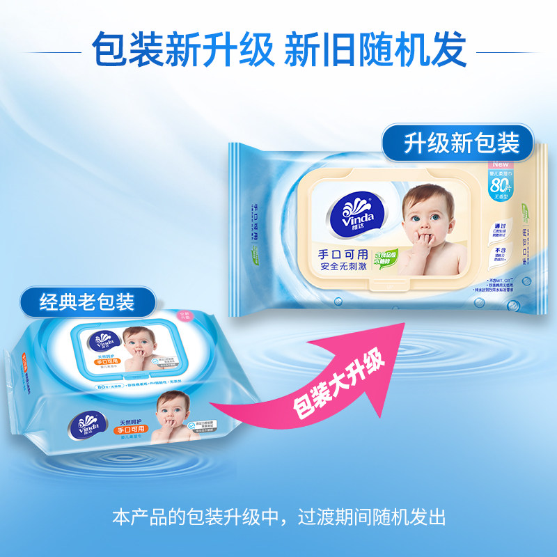Vida baby wet wipes hand mouth available 4 packs of 80 slices of removable large bag no fragrant baby newborn with wet tissue