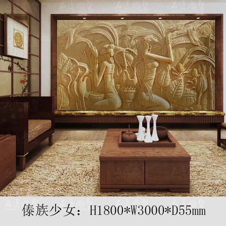 Artificial sandstone figure relief decoration custom glass steel background wall Southeast Asia relief Dai girl mural