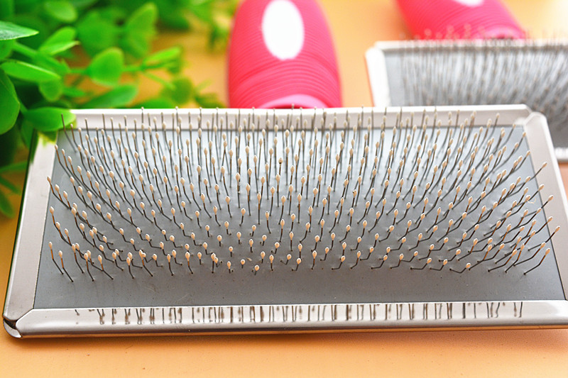 Pet Needle Comb Stainless Steel Rubber Handle Needle Comb with Point Anti-scratch Dog Comb without Point Hardcover Needle Comb Medium