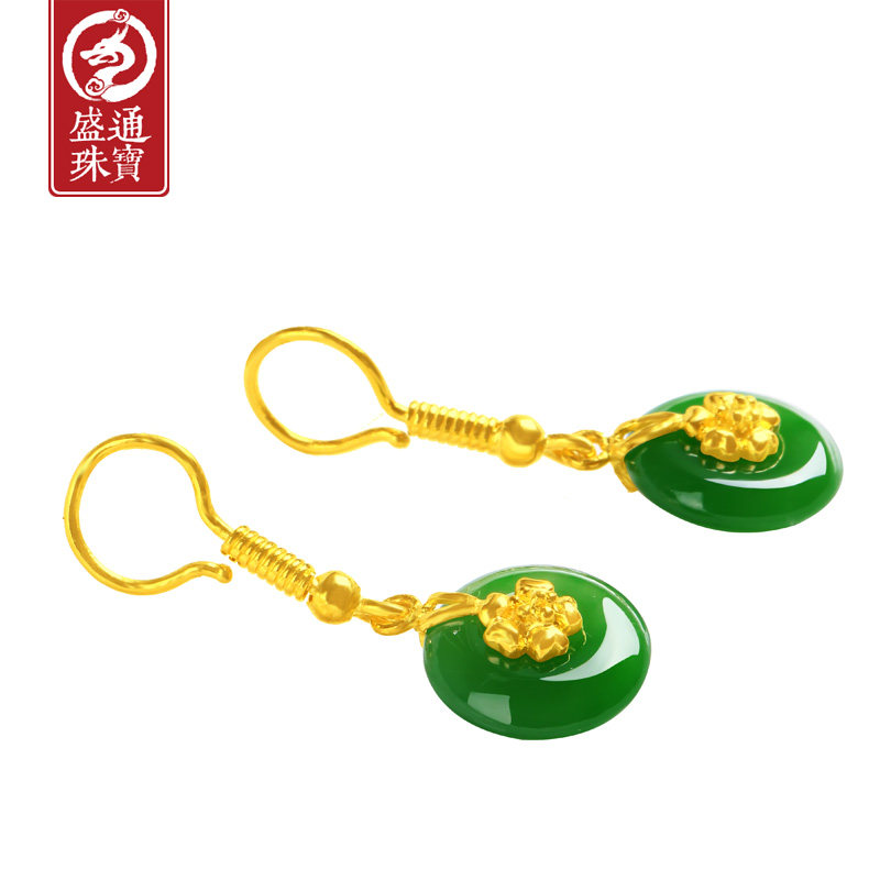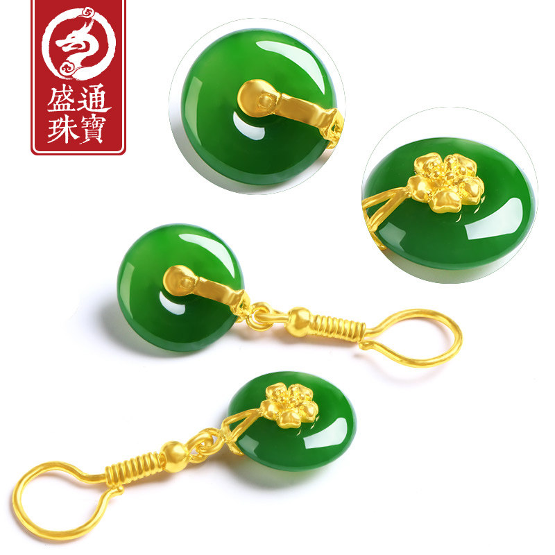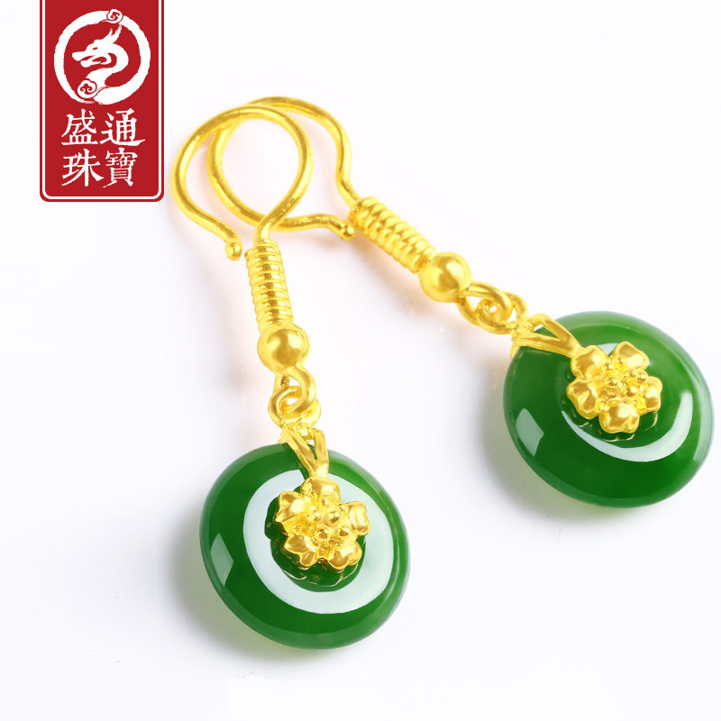 Sheng Tong Jewelry Natural Jade Gold Inlaid Jade Pendant Female Foot Gold Inlaid and Tian Beyyu Lily Green Button Earrings