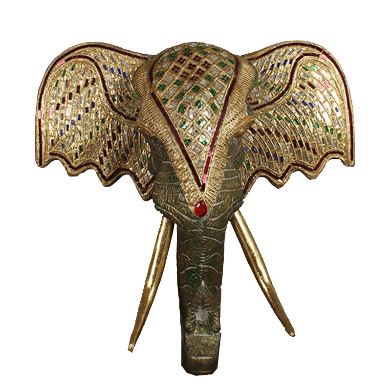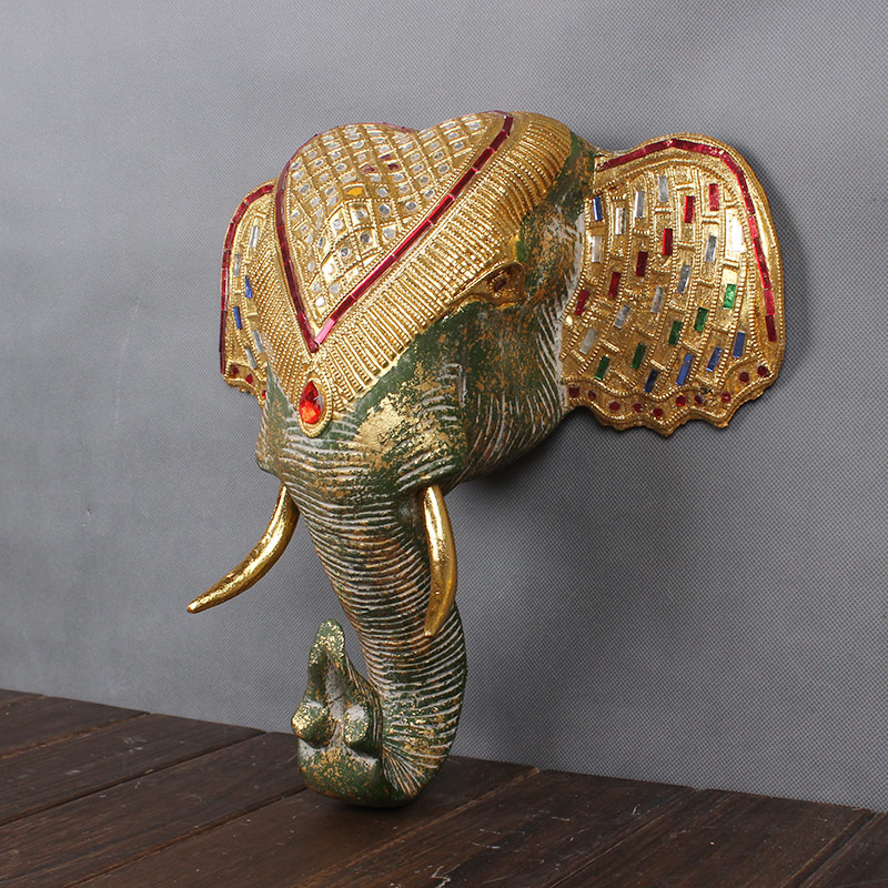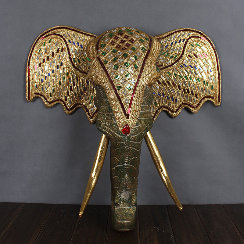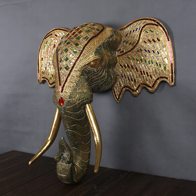 Thai wood carving elephant head wall decoration Southeast Asian hand carved wall decoration home decoration Thai wall Prospectus Pendant