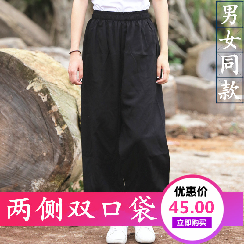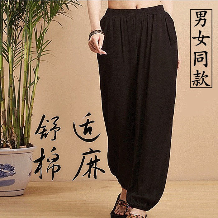 Cotton Hemp Tai Chi Pants Men's Spring Summer Loose large size Size Light Cage Pants Women Morning Practice Martial Arts Performance Suit Taijiquan Style Pants
