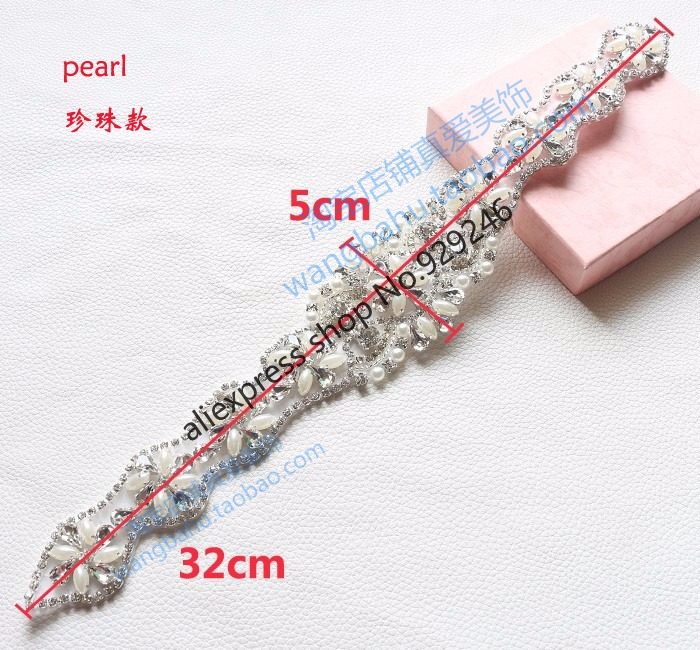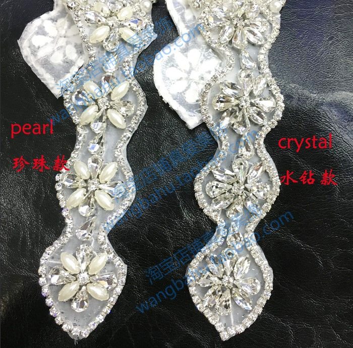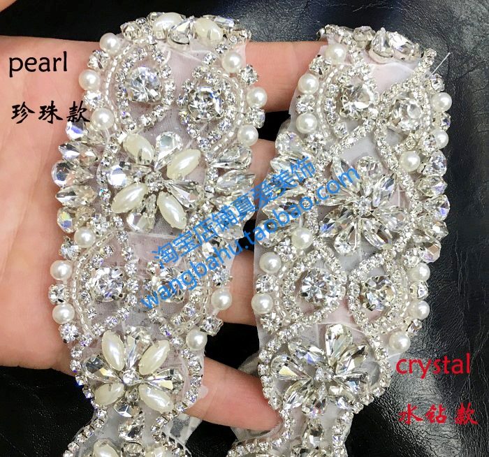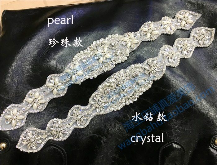 Ultra-long pearl glass drilling water drilling nail beads drilling trim strips DIY wedding dresses waist bridal belt decorative material