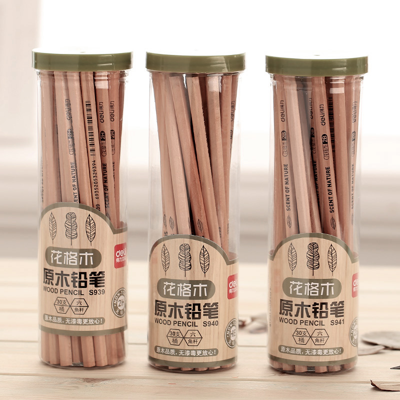 Deli new lattice wood pencil triangular hexagonal 2H HB log pen holder 30 tubes - Taobao