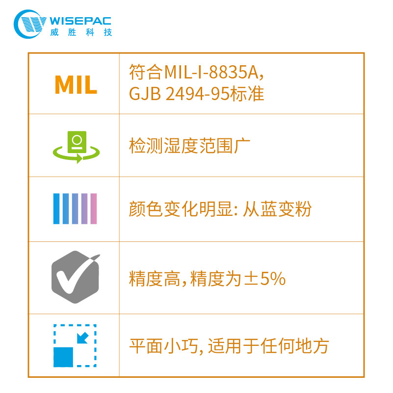 wiseHIC-1 Series Single 1:8 % Blue Pink Red Moisture Indication Display Card Canned 200 slices