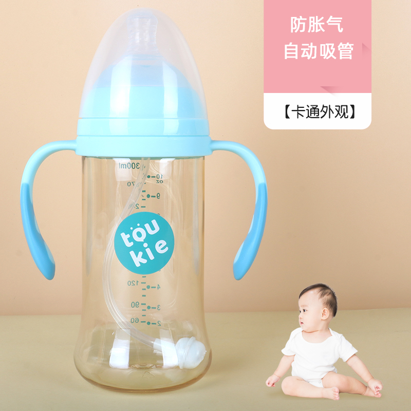 Newborn Baby Food Grade PPSU Wide Bore Automatic Straw Bottle With Handle Not Flatulfed Breast Milk Pacifier
