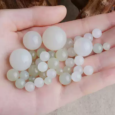 Natural Hetian Jade round beads loose beads White Jade Jasper and Tian jade has no hole beads hand string necklace wholesale chain