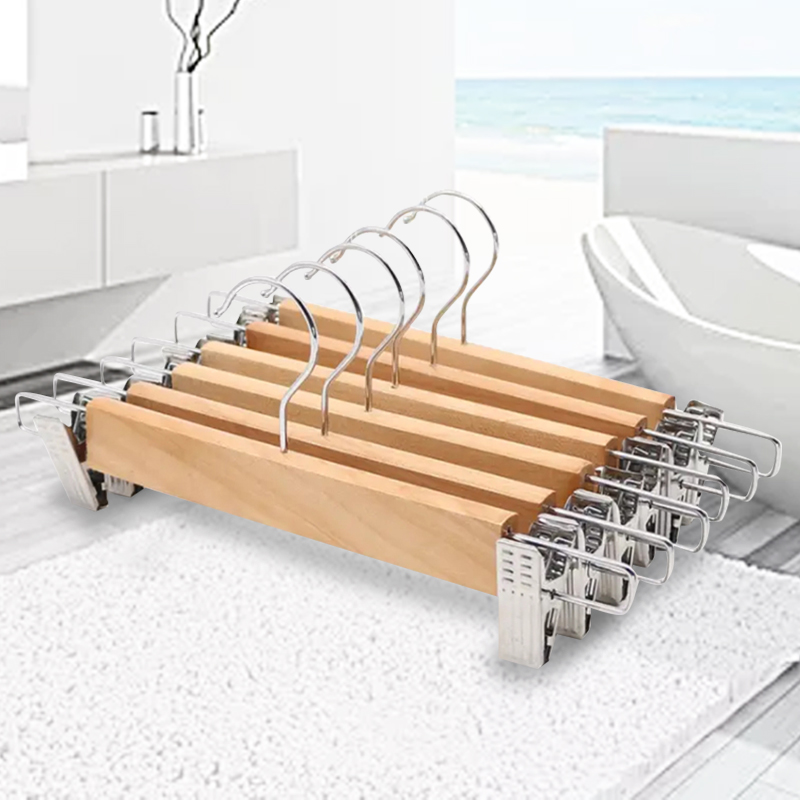 Houya hanger pants rack 5pcs solid wood pants rack pants clip windproof wardrobe storage hanging drying rack