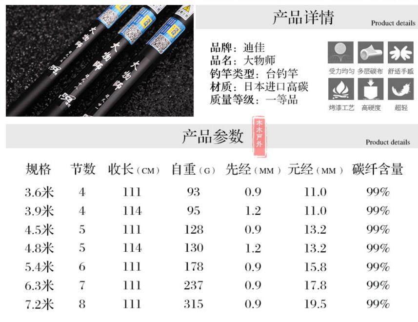 Dijia big material Japan imported carbon fishing rod 3 9 4 5 5 4 meters Taiwan fishing rod ultra-light and super hard