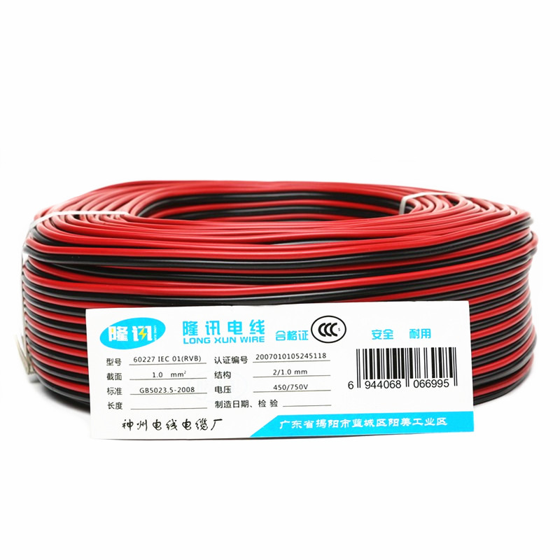 Pure copper 2 core 0.5 075 1 1.5 red and black parallel line monitoring power line LED horn line full 100 meters