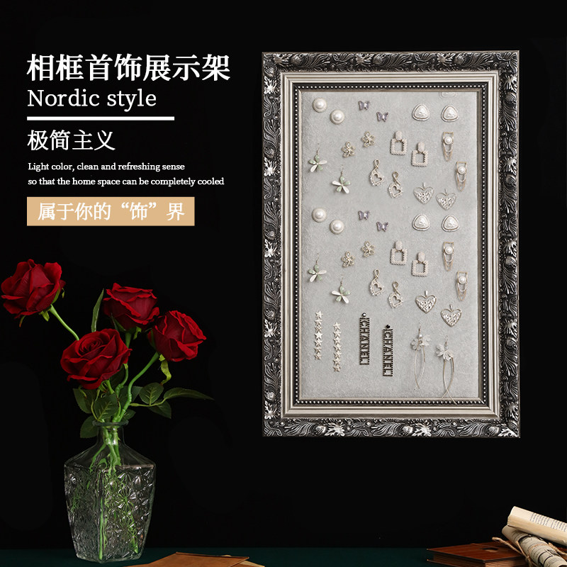 Silver photo frame jewelry necklace earring shelf display stand jewelry ear needle storage jewelry props rack display earrings