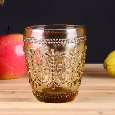 Retro embossed colored glass glass heat-resistant water cup tea tea cup zakka creative Western restaurant cold drink cup Milk Cup
