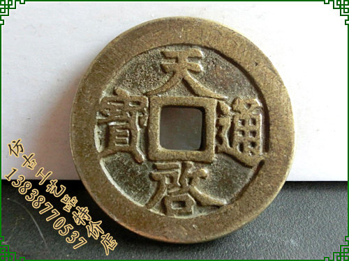 Imitation ancient handicraft bronze ware Tianqi Tongbao back 11 Two Chuanbao slurry
