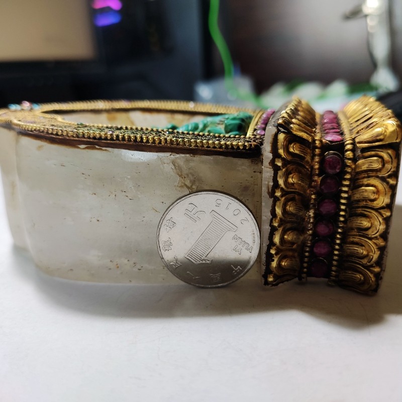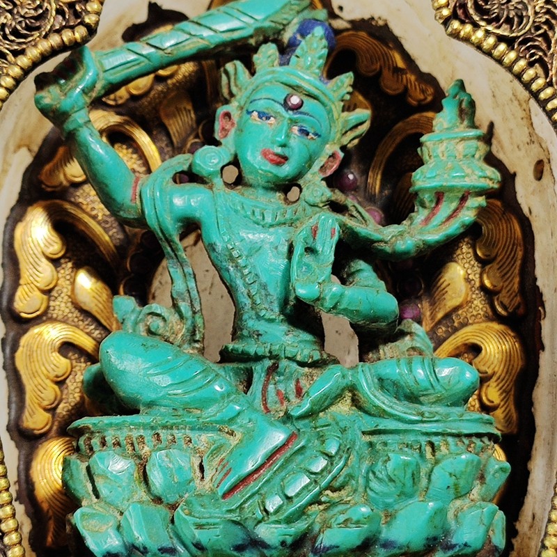 Tibetan antique miscellaneous Qing Dynasty crystal old Buddha shrine carved turquoise Manjushri Bodhisattva home feng shui ornaments