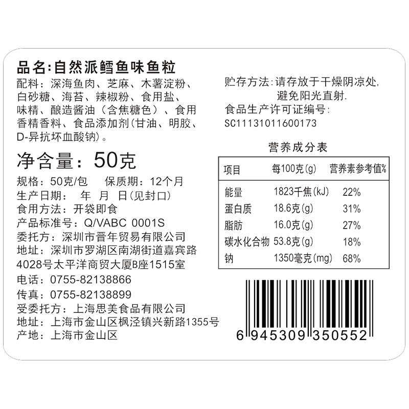 Natural Pine Cod Fish Taste Fish Grain 50g * 3 Bagged Ready-to-eat Sea Taste Casual Snack specie Snack Independent Packaging