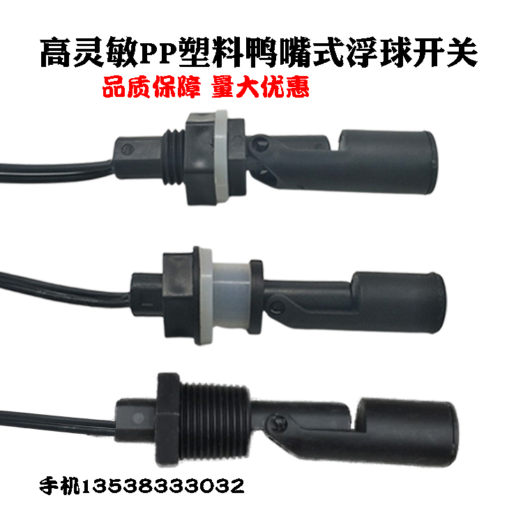 Anti-corrosive PP plastic duckbill type floating ball switch black side mounted water level switch liquid level controller sensor