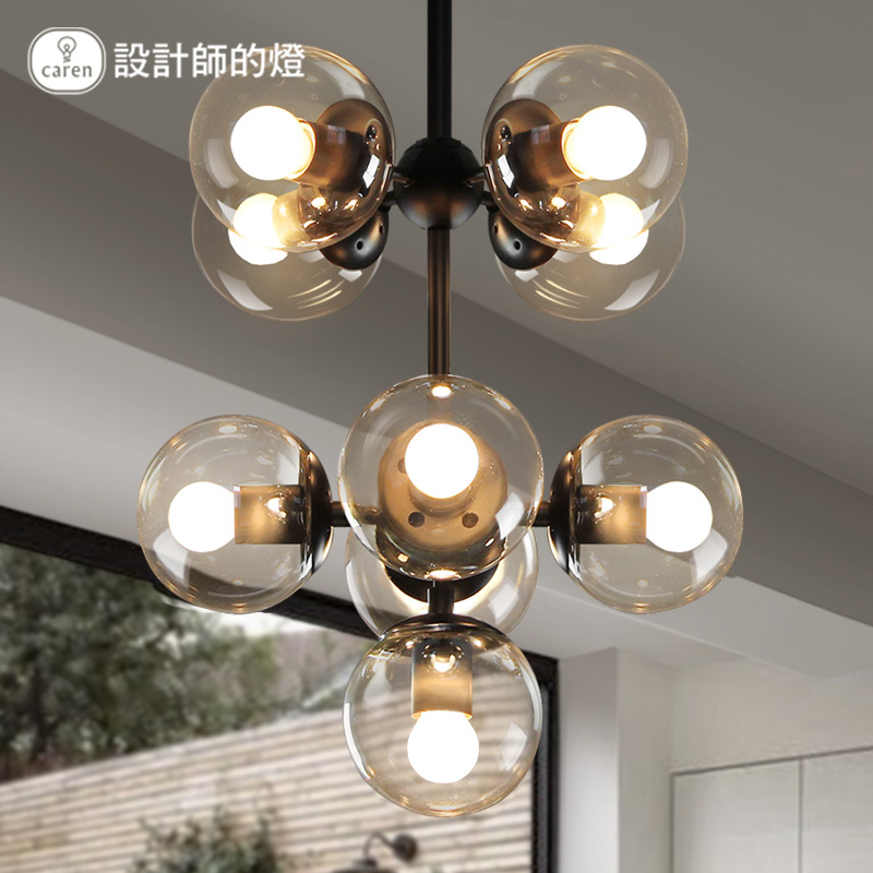 Designer Lights Living Room Light Creativity American Chandelier LED Glass Round Ball Restaurant Iron Art Magic Bean Molecular Chandelier-Taobao