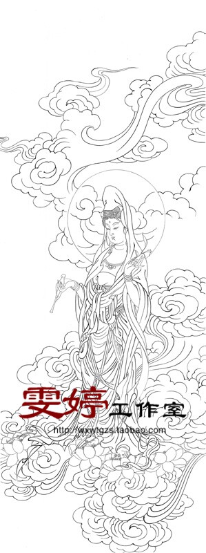 Meticulous painting Guanyin fairy character line drawing draft Feng Shui painting flower and bird painting four-foot Chinese painting Guanyin sprinkle blessing map