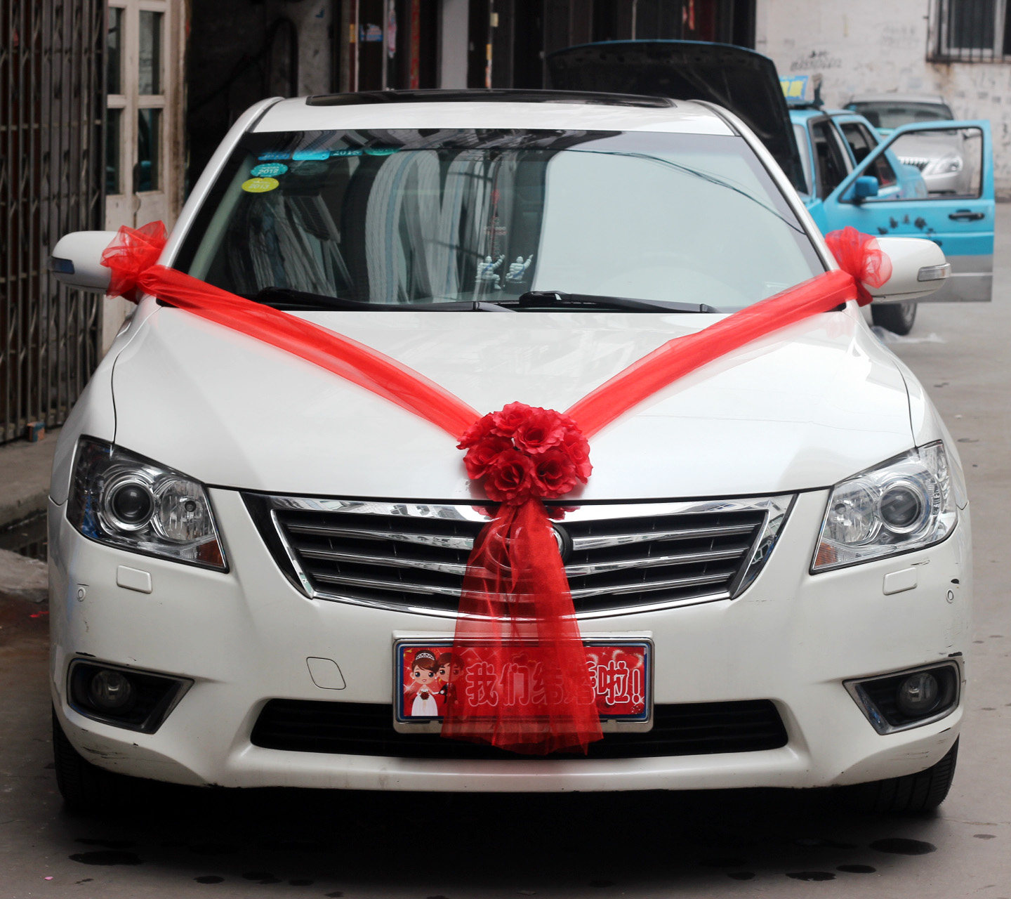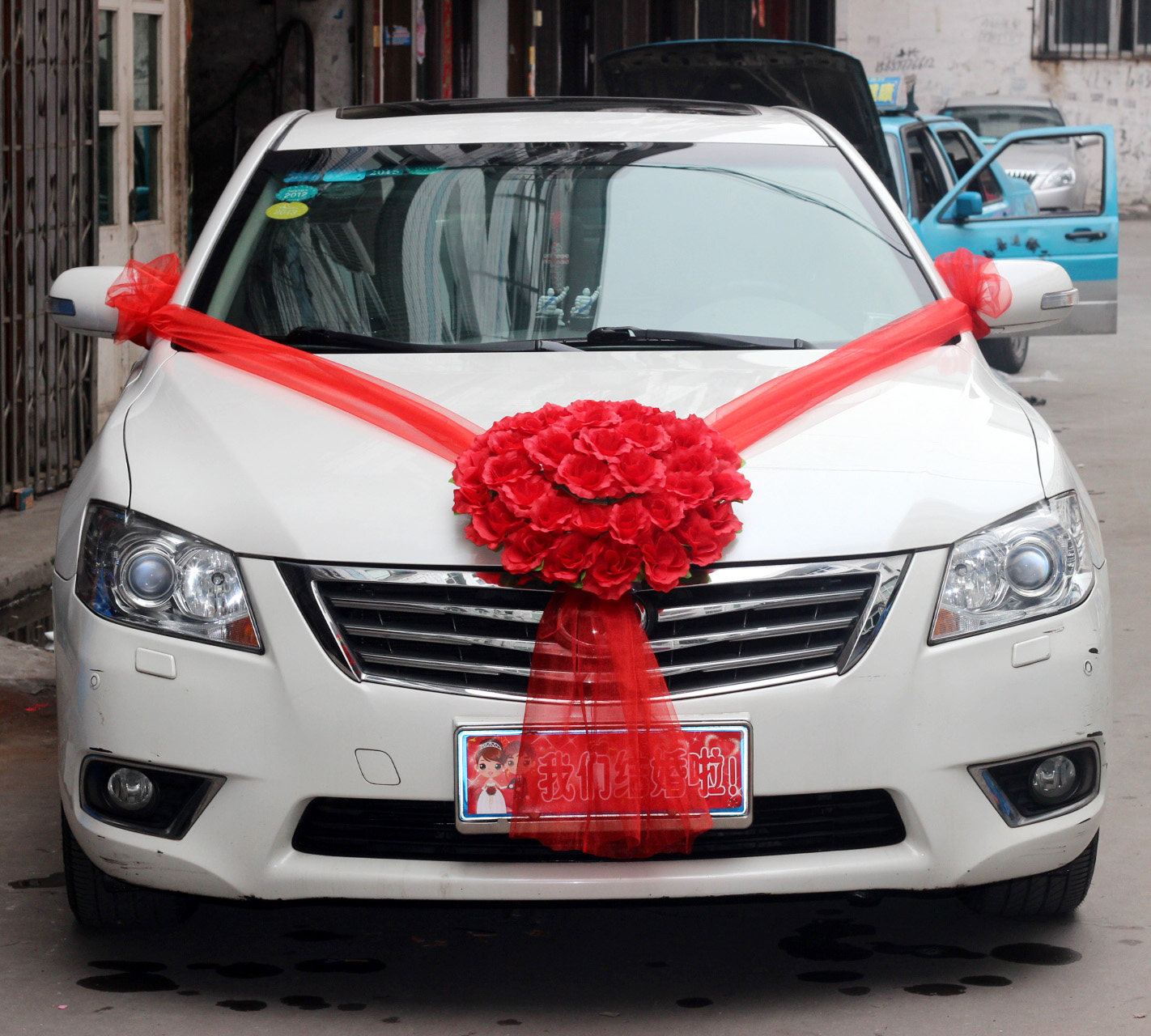 Wedding car front decoration Vice wedding car decoration set fleet car front flower ball wedding big red flower car dress