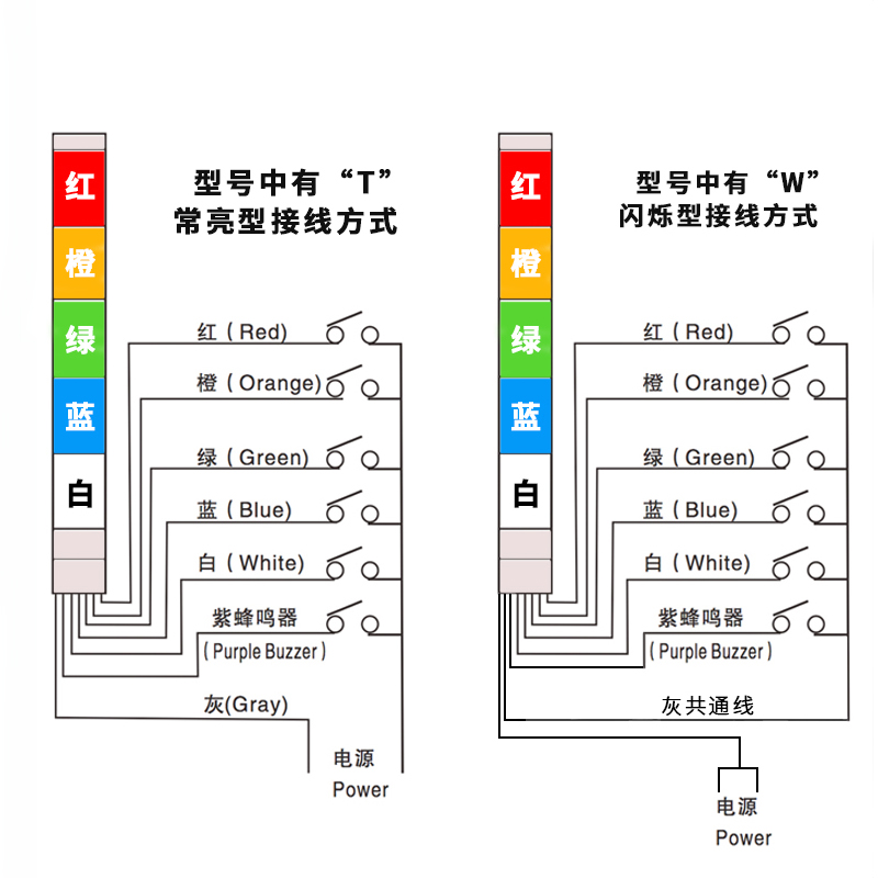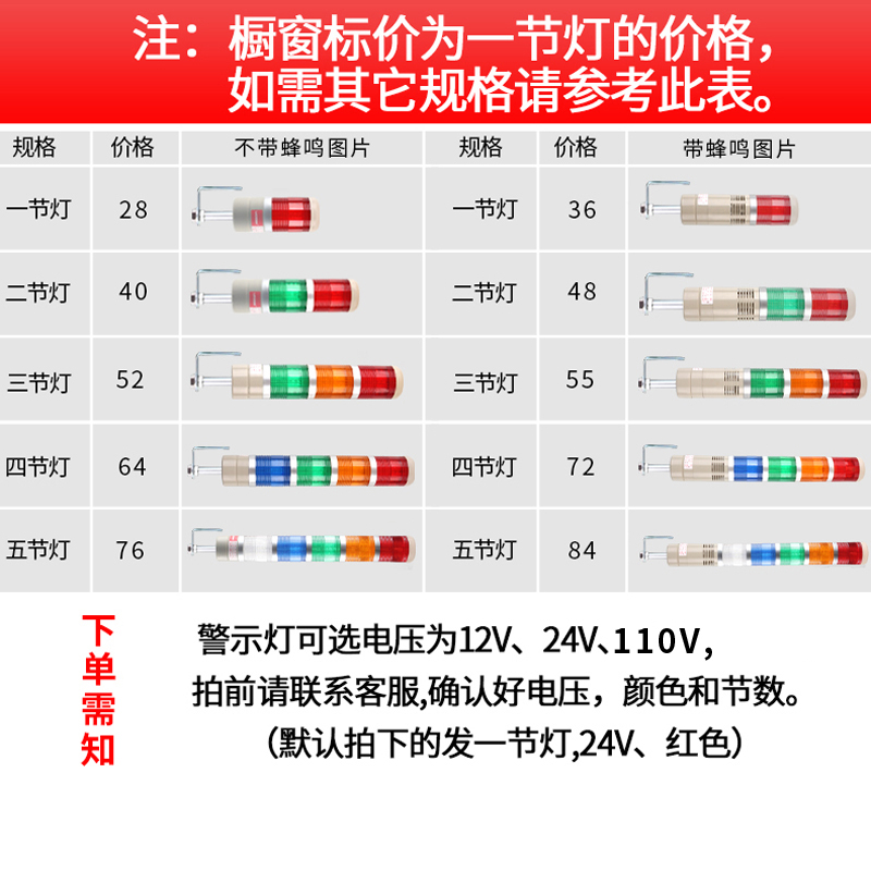 24V one-section lamp (without buzzer) 24V two-section lamp (without buzzer) 24V three-section lamp (without buzzer) 24V four-section lamp (without buzzer) 24V five-section lamp