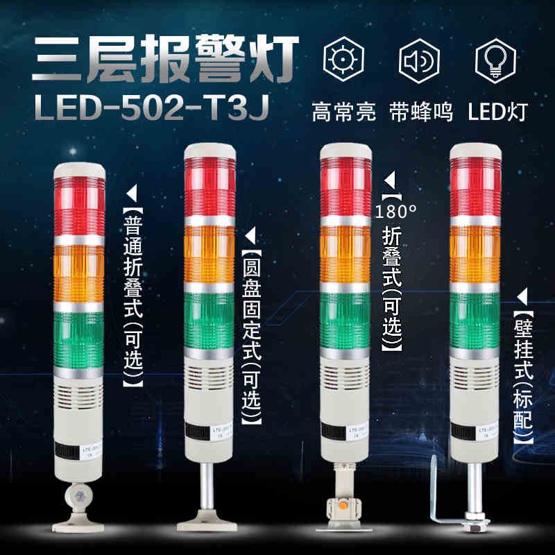Alarm light LED three-color flash signal light with buzzer LED-502-T3J Machine tool lighthouse safety warning light