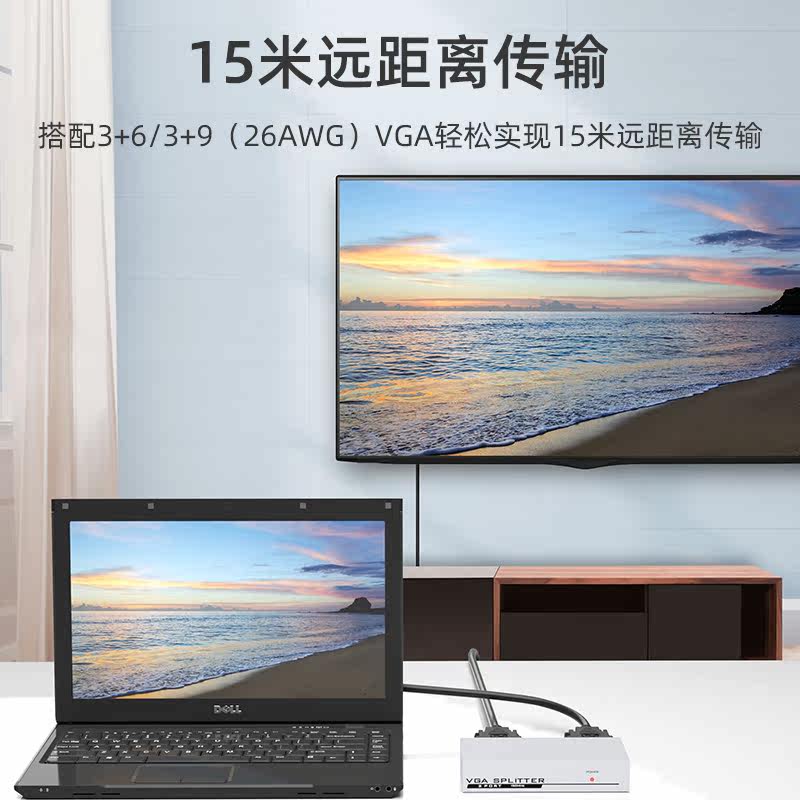 Xinzhiran VGA distributor 1 point 2 HD 1080p 1 point 2 monitor computer movie split screen frequency converter one in 2 out host TV projector 1 in 2 out multi-screen expansion