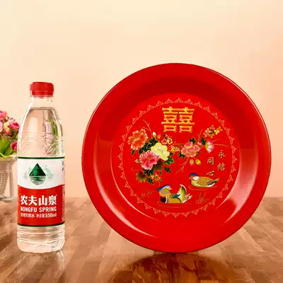 Wedding big red plate disc Wedding festive happy word tea plate Candy plate Fruit plate Tea tray