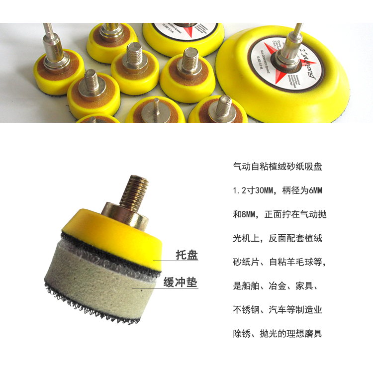 1 2 inch 30MM pneumatic flocking sandpaper suction cup brushed self-adhesive tray Shixin pneumatic grinding disc M6M8