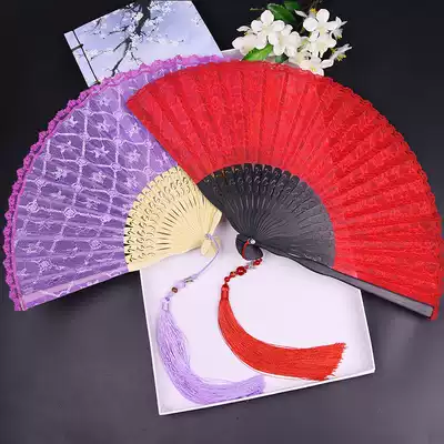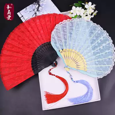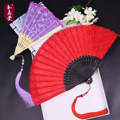 Chinese style COS big red fan lace fan Japanese folding fan lady dance fan classical ancient style Ju Jingyi