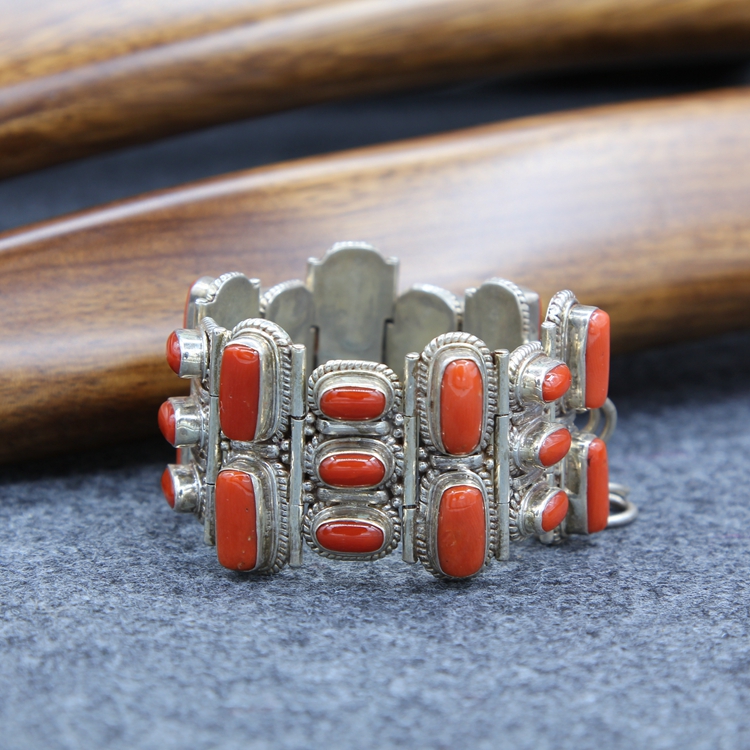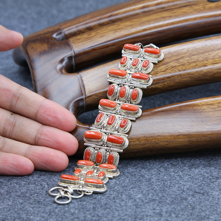 Chili Red Pure Original Branches Italian Sea Redstone Bracelet Handstring Accessories Pure Silver Handmade-D