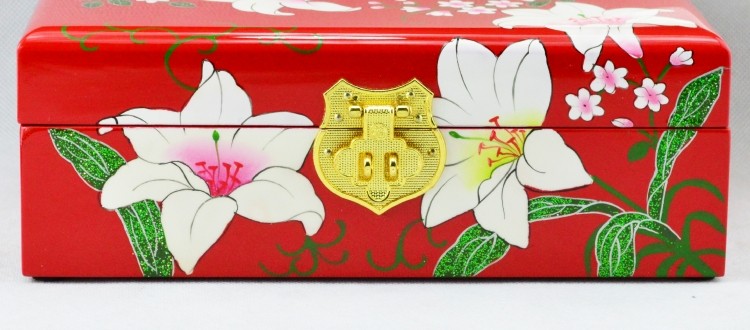 Flat Away Push Light Lacquered Ware First Accessories Box Wood Retro Chinese Style Makeup Dresser Red Lilies