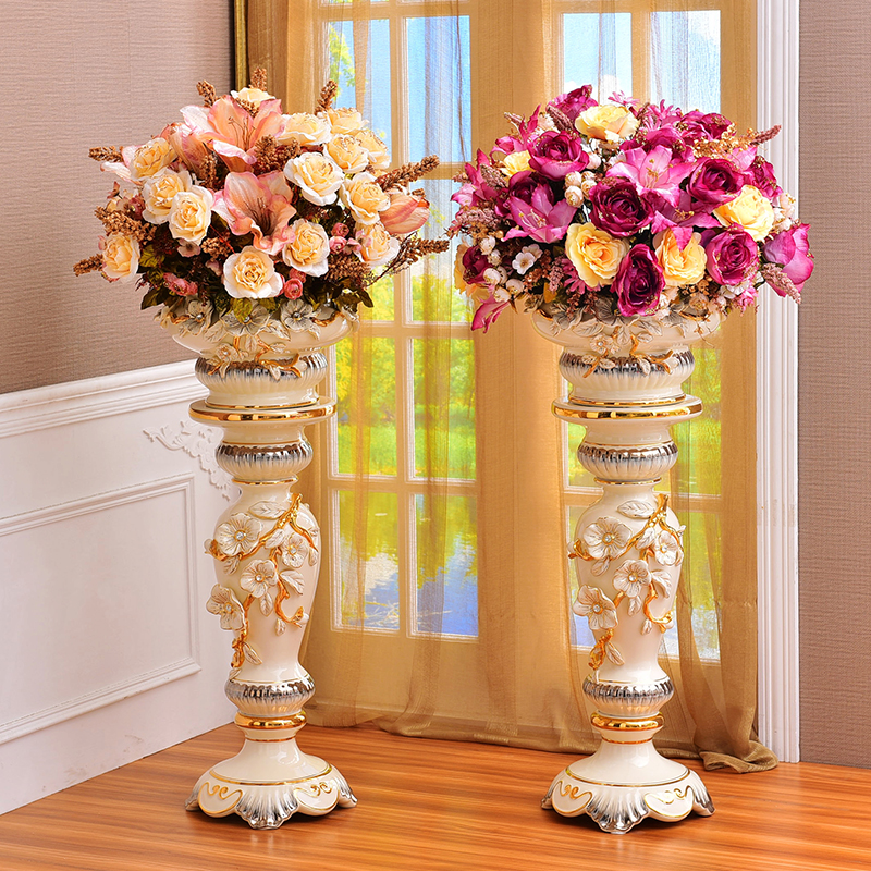 European Roman column ornaments living room high-grade ceramic floor-to-ceiling vase flower arrangement European floor-to-ceiling large vase decoration