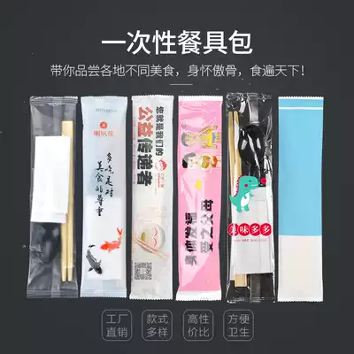 Horn flower disposable chopsticks Bamboo chopsticks delivery four-in-one tableware four-piece set Individually packaged with toothpicks 50 pairs