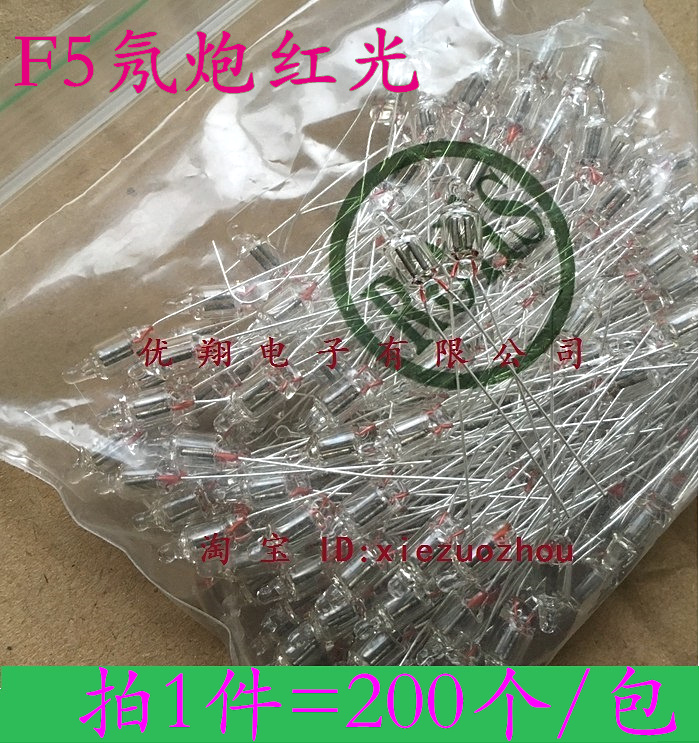 Red neon bulb F5 light indicator 220V 5mm red light 5*13MM (200 packs=14 yuan)