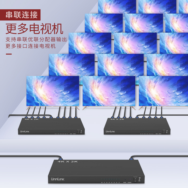 Youlian HDMI splitter 1 in 8 out splitter 1 in 8 out splitter 1 in 8 out splitter 3D HD 4K computer TV store monitoring multi-screen display divider