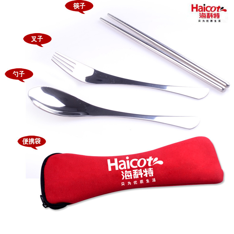 Haikete stainless steel fork spoon chopsticks portable three-piece set ultra-thick durable texture chopsticks spoon fork
