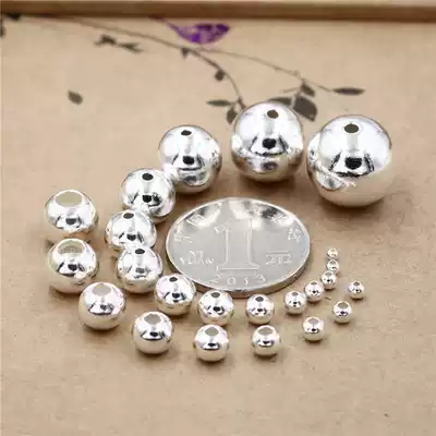 S925 sterling silver DIY bracelet round beads spacer beads accessories Plain silver light beads loose beads Handmade beaded material beads