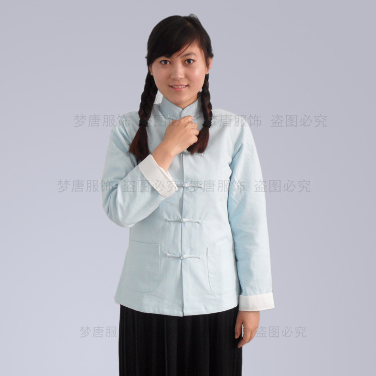Chinese Style Tang Dress Lady Coarse Cloth Double Coat Hanfu Improvement Spring Autumn Pure Cotton Ethnic Wind Women's Clothing Disc Button Blouse