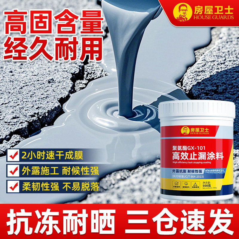 Special coating for roof waterproofing and leak repair. Building roof leak sealant. Polyurethane exterior wall waterproof glue to repair leaks, cracks and water seepage.